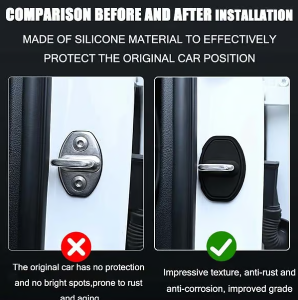 The original car door lock has no protection, no bright spots, is easily scratched, rusted and aged, and will affect the smoothness of the door over time. The purpose of this product is also to protect your car, enhance its quality, prevent rust and corrosion, and improve its quality.